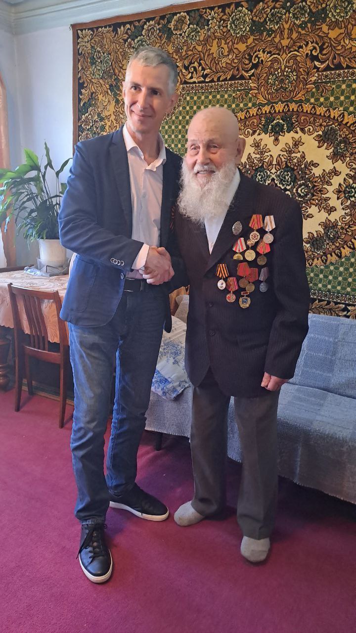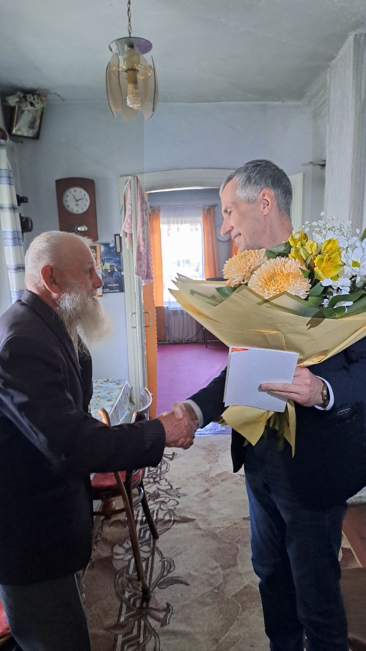 Пришел поздравить Александра Павловича и герой нашего времени — участник специальной военной операции Данила Шашков. Защитники Отечества обменялись теплыми словами благодарности и признательности.