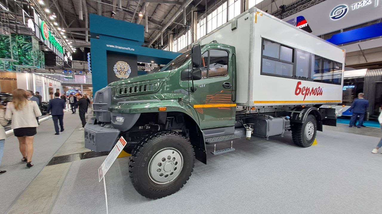 В рамках промышленной выставки «Иннопром-2025» автомобильный завод представляет вахтовый автобус на базе нового шасси Урал-80 с колесной формулой 4х4.