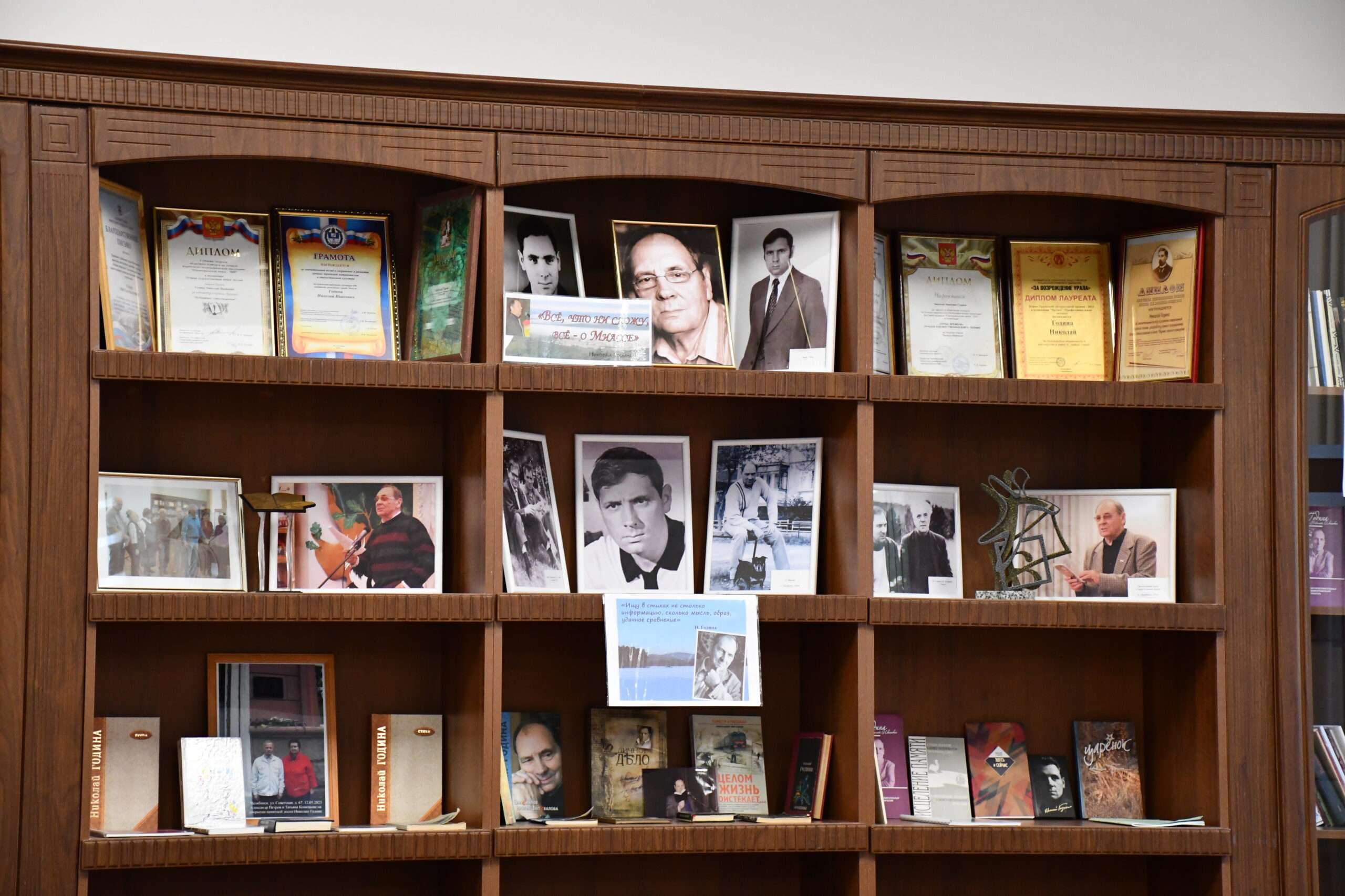 Центральное место в Литературном музее занимает экспозиция, посвященная памяти Николая Ивановича Годины, знаменитого уральского писателя, который внес огромный вклад в развитие литературного объединения «Ильменит» и литературной жизни города в целом. Хотя писатель не родился в Миассе, он провел здесь всю свою сознательную и трудовую жизнь, оставив неизгладимый след в культурном ландшафте города. Экспозицию также пополнили и другие писатели и поэты, подарив музею уникальные памятные вещи.