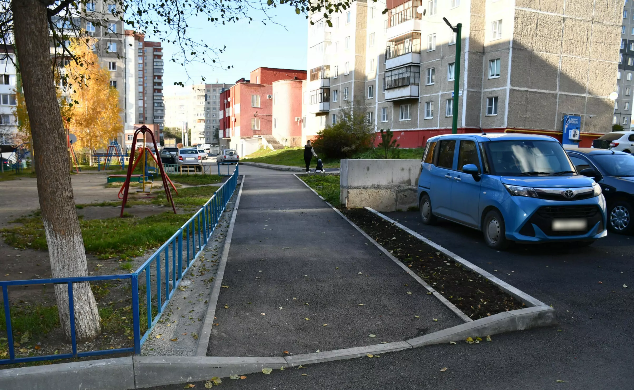 Но и в октябре здесь есть на что посмотреть, поскольку сделали не только клумбы. В нынешнем сезоне асфальтировали дворовый проезд, расширили парковку, частично отремонтировали подпорную стенку, с восточной стороны дома проложили тротуар.