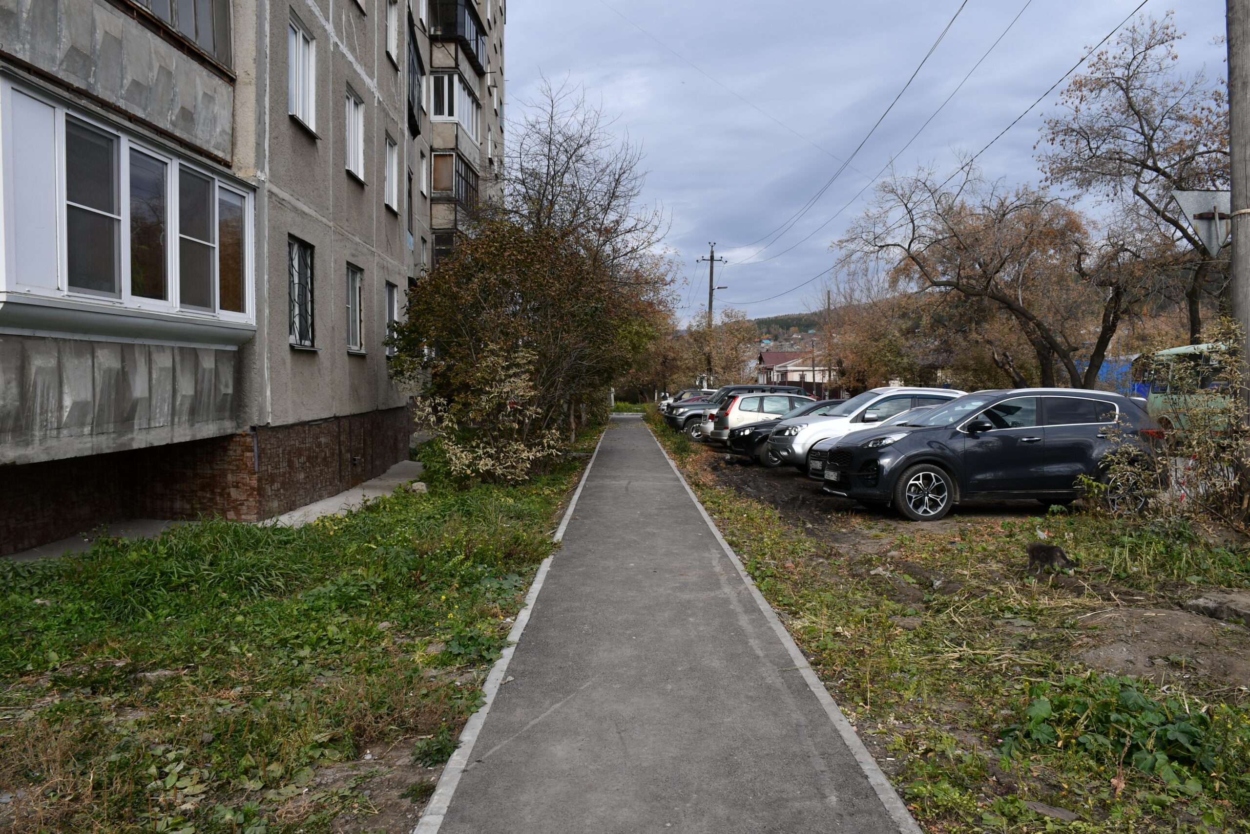 А еще обустроили протяженный тротуар вокруг дома — на радость любителям прогулок.