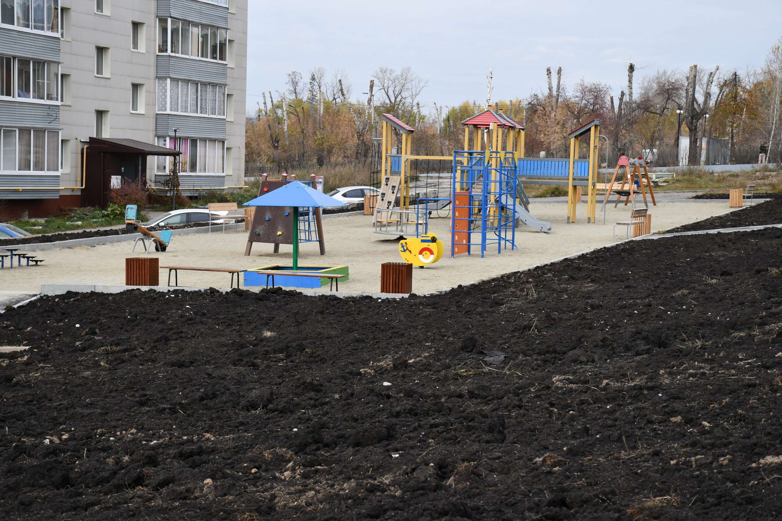 Перемены стали возможны благодаря конструктивному взаимодействию городских властей и местного застройщика. Детскую площадку оборудовали по программе инициативного бюджетирования — расходы составили 3 433 413,00 руб. Строительная компания взяла на себя возведение подпорной стенки и удобной лесенки к площадке, обустроила газоны, проложила водоотводы, которые