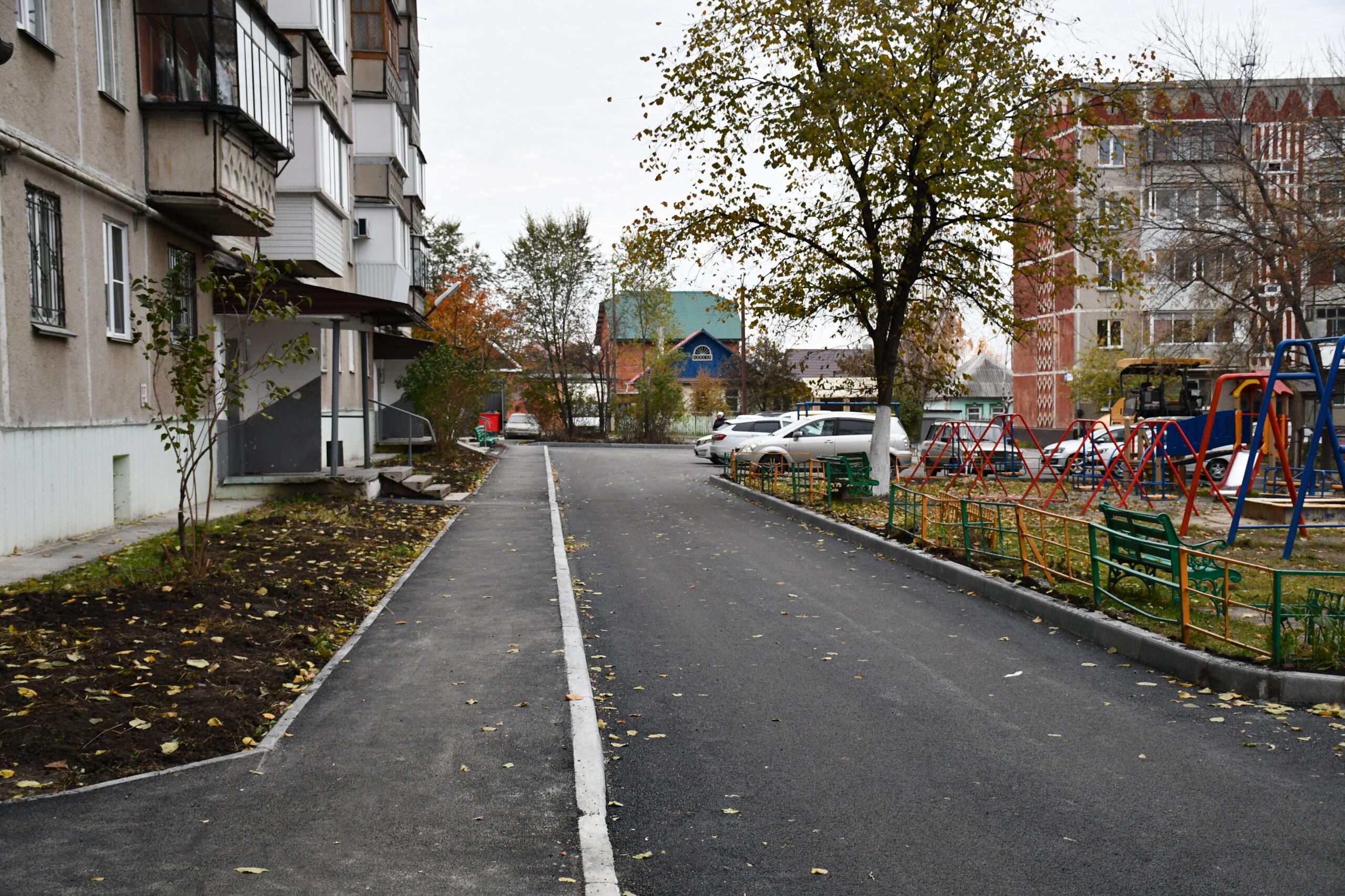 Нехватка мест для автомобилей, разбитый асфальт с выбоинами и лужами, устаревшие качели — все это теперь в прошлом. В нынешнем сезоне на внутридворовых проездах уложили новое покрытие, обу-строили большую парковку и добротные тротуары. Для детворы оборудовали современную площадку — интересную и безопасную.