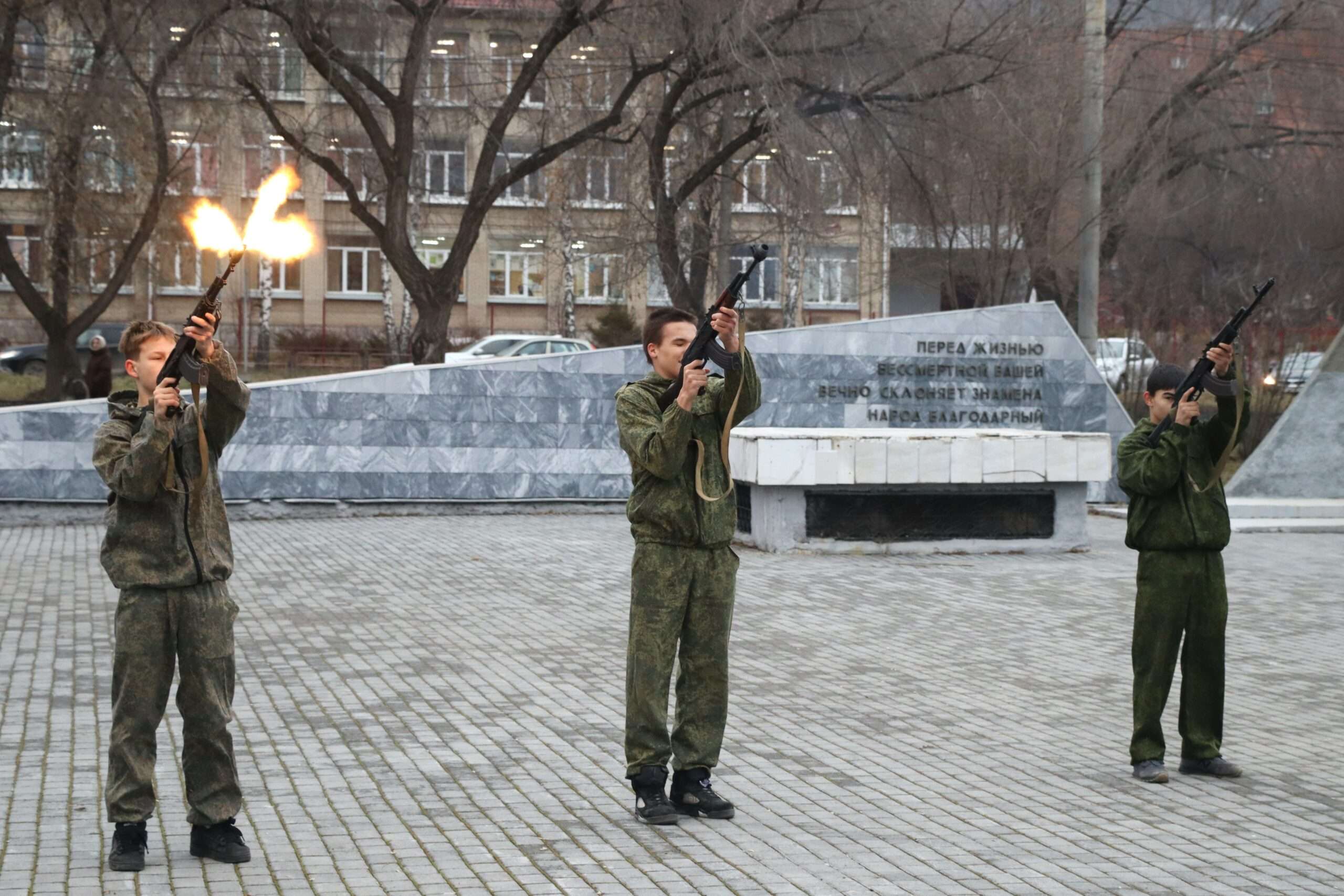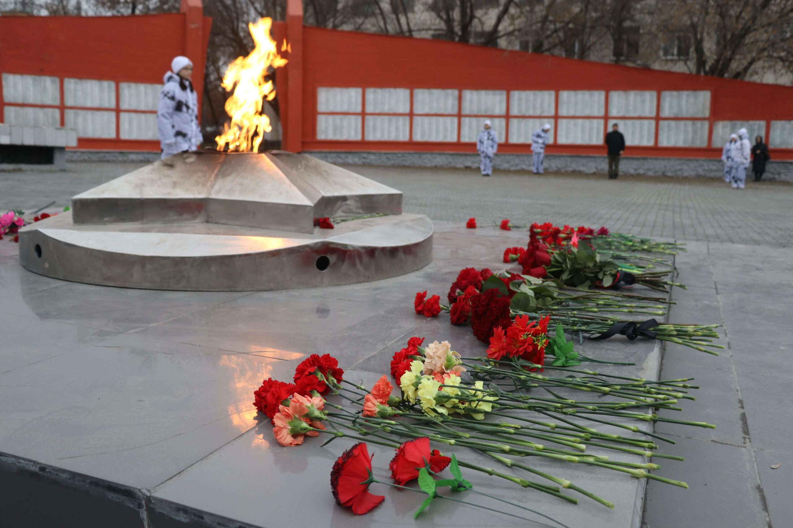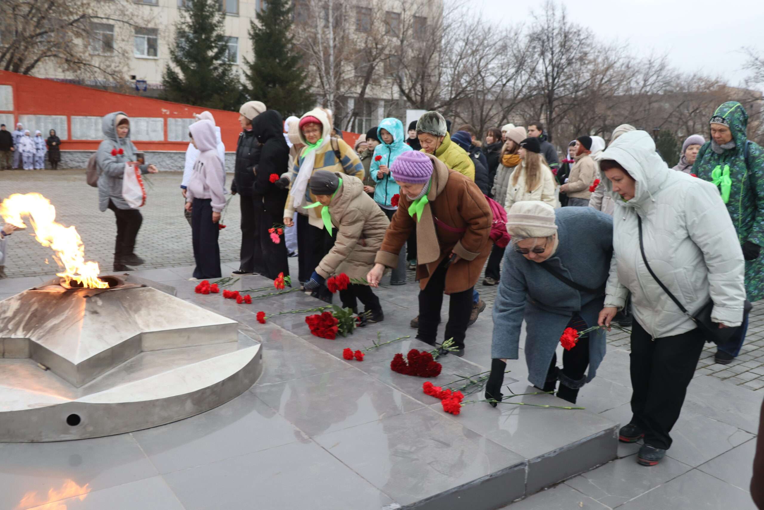 В завершение мероприятия участники почтили память героев минутой молчания и возложили к Вечному огню цветы.