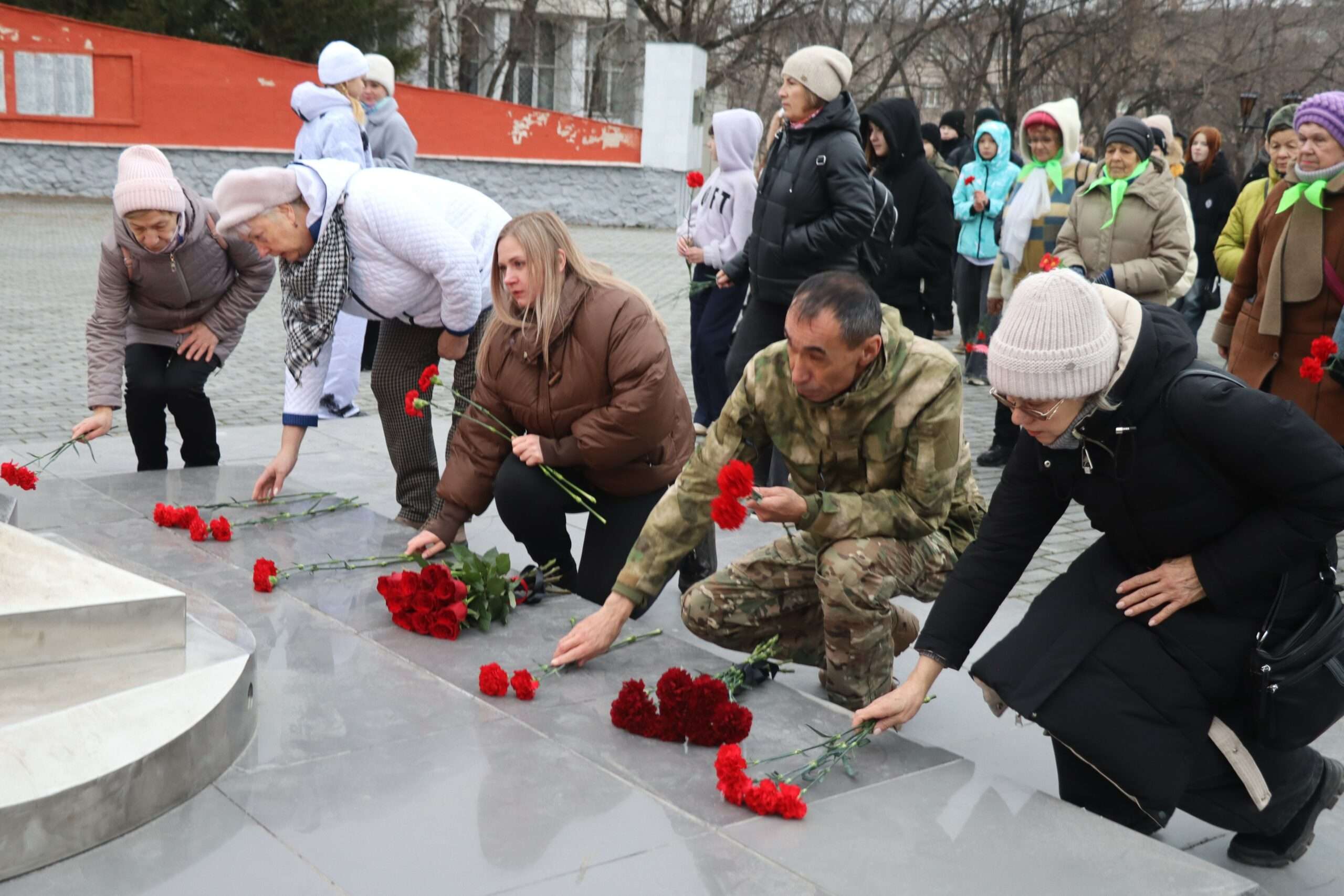 В День Неизвестного Солдата на площади возле мемориала Скорбящей матери собрались десятки жителей города.