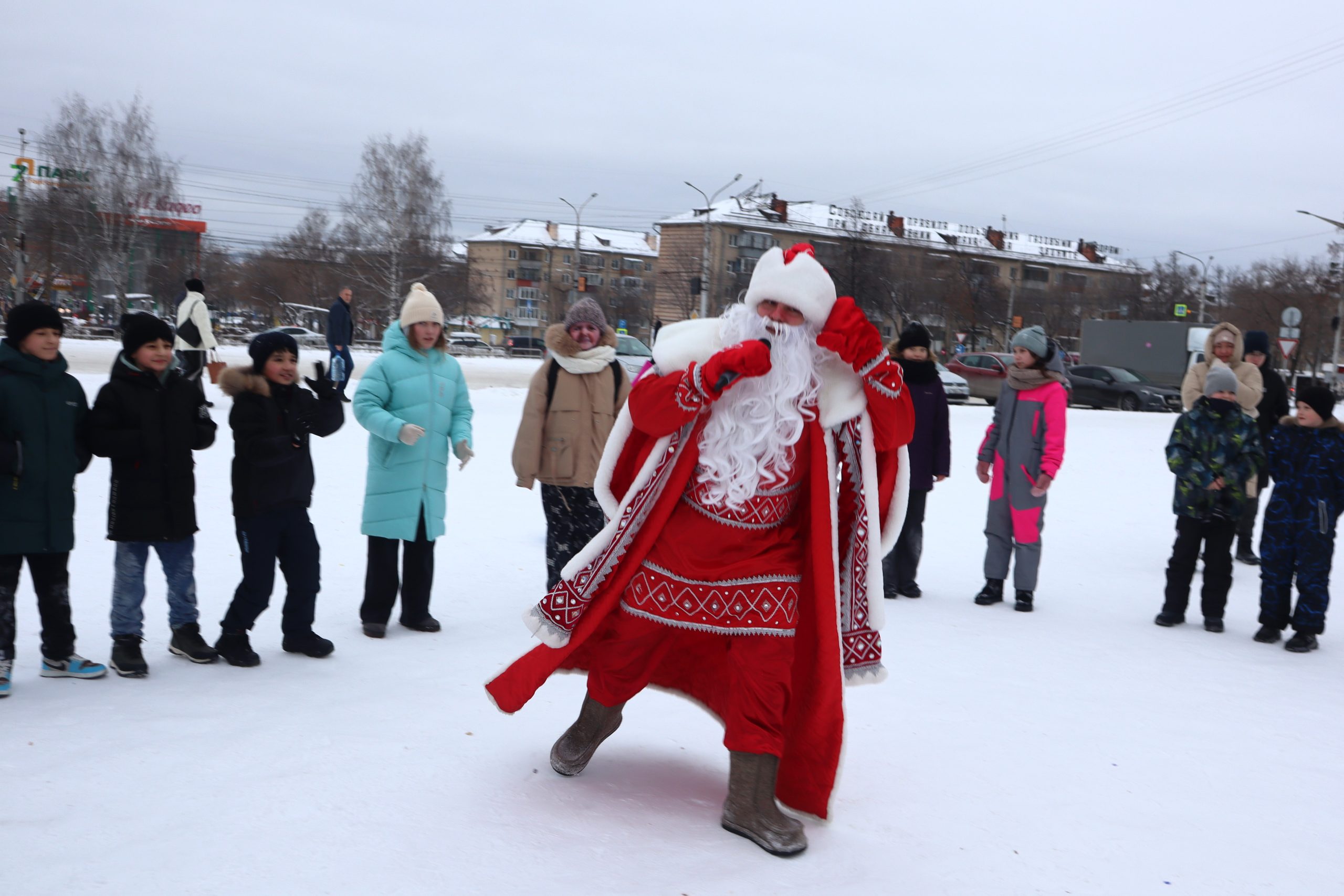 Каждый день здесь царит настроение праздника и веселья. Возле главной городской елки разворачивается праздничная игровая программа «Снежный переполох: Новый год в действии». Творческие коллективы учреждений культуры устраивают яркие театрализованные представления, увлекая юных зрителей в атмосферу сказки и приключений. Дети участвуют в традиционных новогодних играх, водят хороводы и получают массу незабываемых впечатлений от общения с любимыми персонажами.