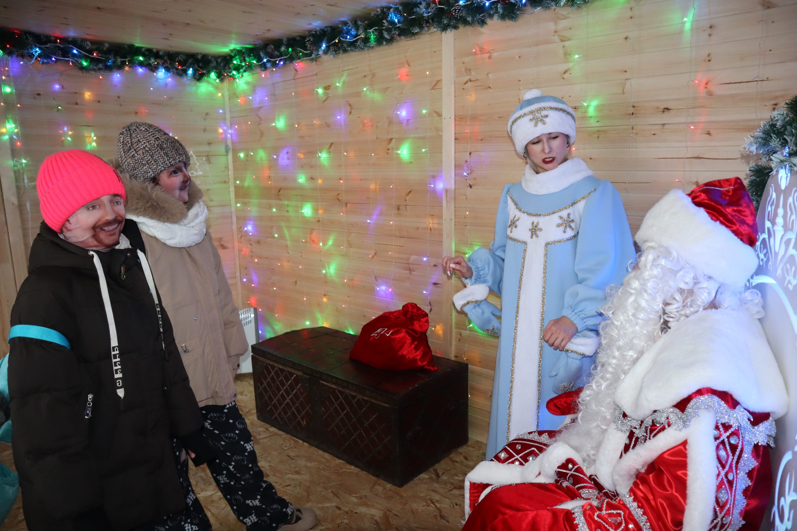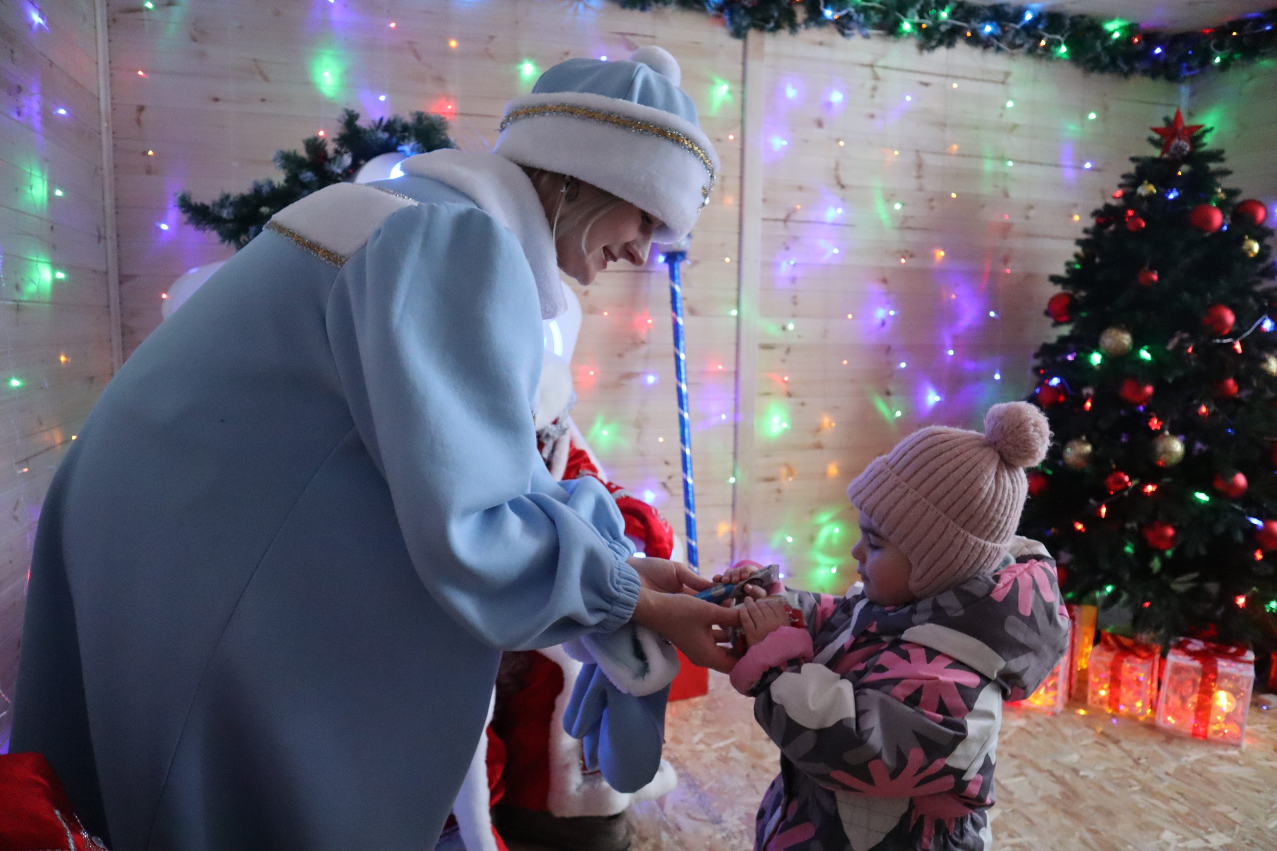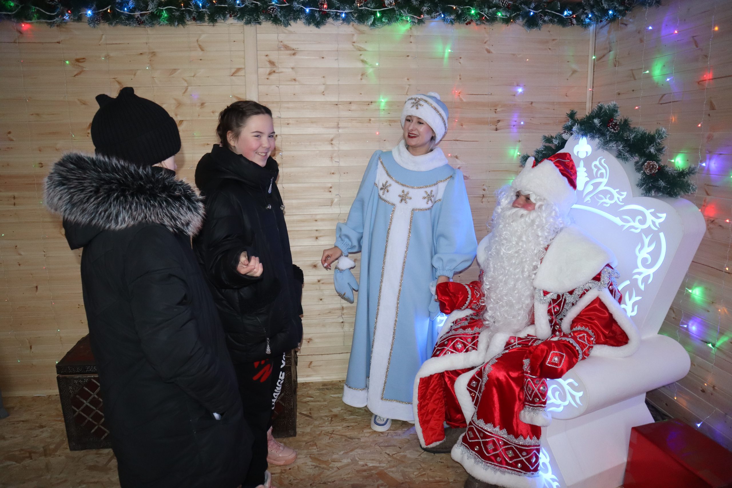 А после веселья и забав ребят приглашают в Дом Деда Мороза. Переступив порог домика, маленькие гости попадают в волшебный мир зимней сказки. Здесь, в уютной обстановке, возле сверкающей елки, можно рассказать сказочному зимнему волшебнику и его помощнице Снегурочке стишок про Новый год или спеть песенку, поделиться с ним своим заветным желанием, сфотографироваться на память и, конечно же, получить сладкий презент.