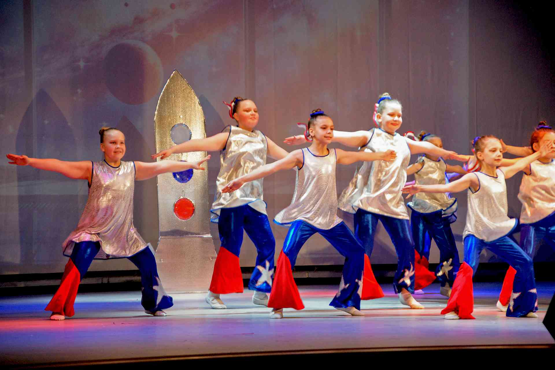 Песни, стихи, хореографические номера, исполненные на фоне кадров кинохроники, перенесли всех на 65 лет назад, напомнили о великих событиях и людях, проложивших дорогу в космос.